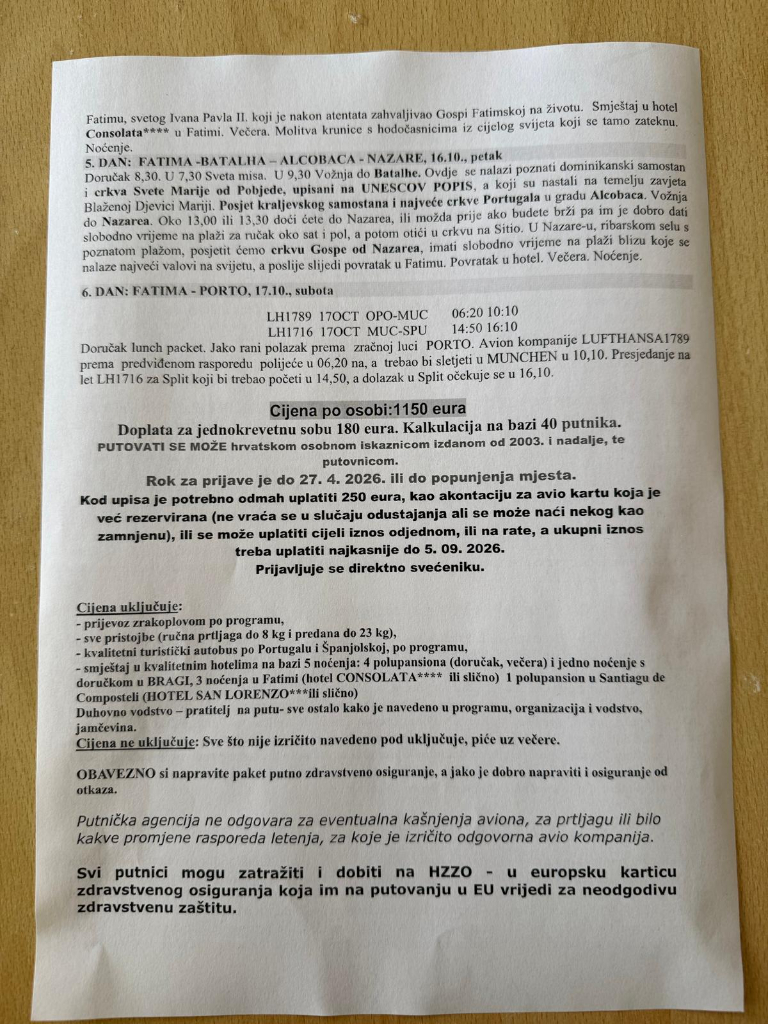 Zainteresirani se mogu prijaviti i upisati u sakristiji nakon svete mise.